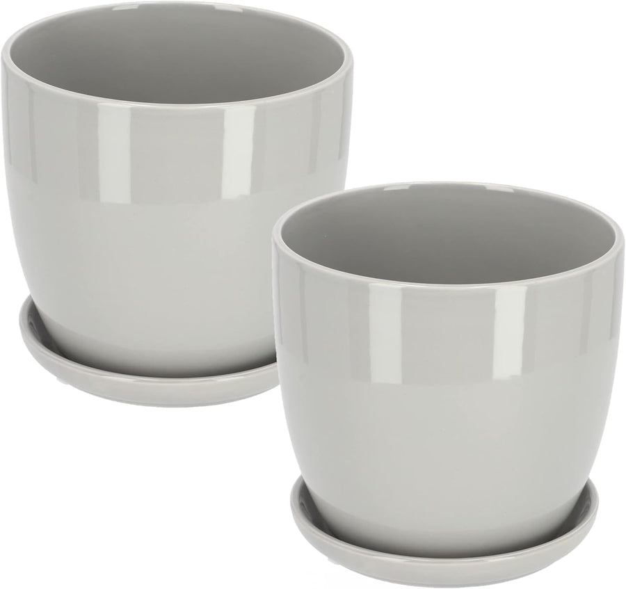- TECHNISCHE DATEN - Blumentopf Grau 13 cm – Höhe: 120 mm, Wandstärke: 6 mm, Durchmesser: 120 mm, Höhe der Tropfschale: 20 mm, Durchmesser der Tropfschale: 128 mm, Farbe: Grau, Material: glasierte Keramik, Gewicht: 610 g
