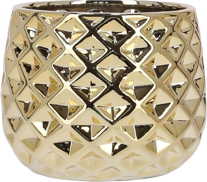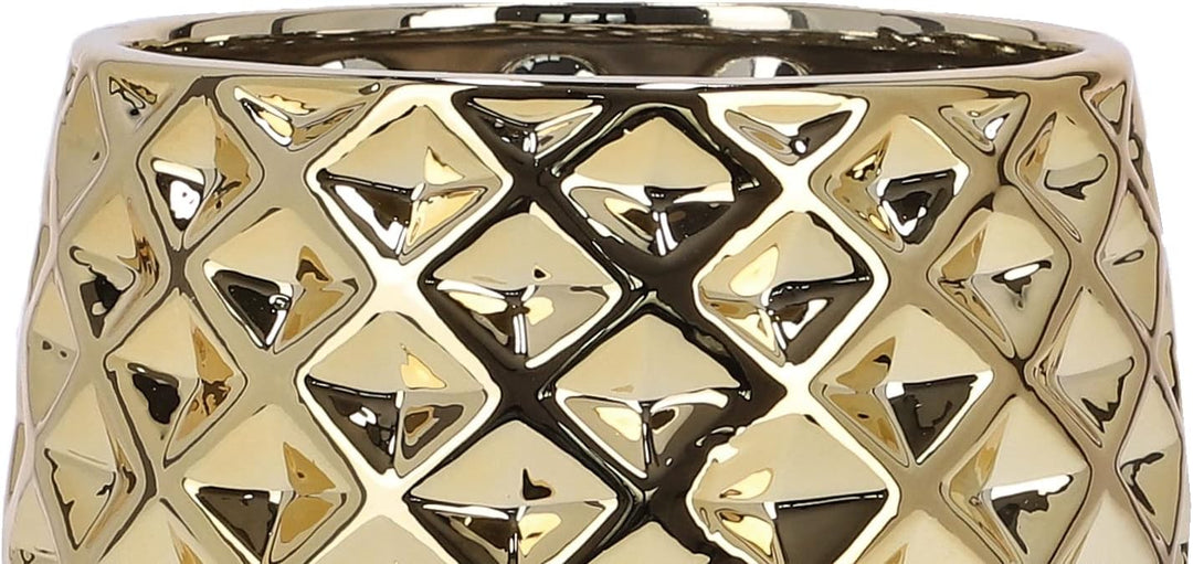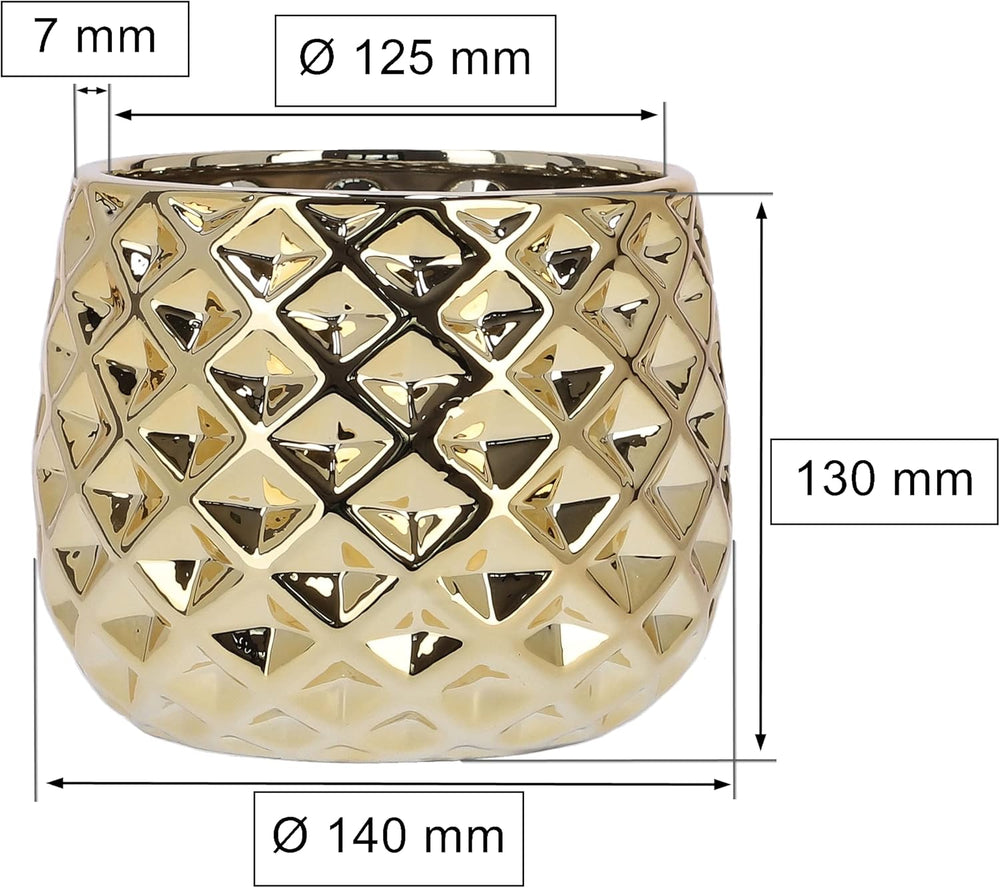 • 🌷 TECHNISCHE DATEN - Blumentopf Gold – Höhe: 130 mm, Bodendurchmesser: 140 mm, Innendurchmesser: 125 mm, Stärke: 7 mm, Material: glasierte Keramik glänzend, Farbe: Gold, Gewicht: 616 g