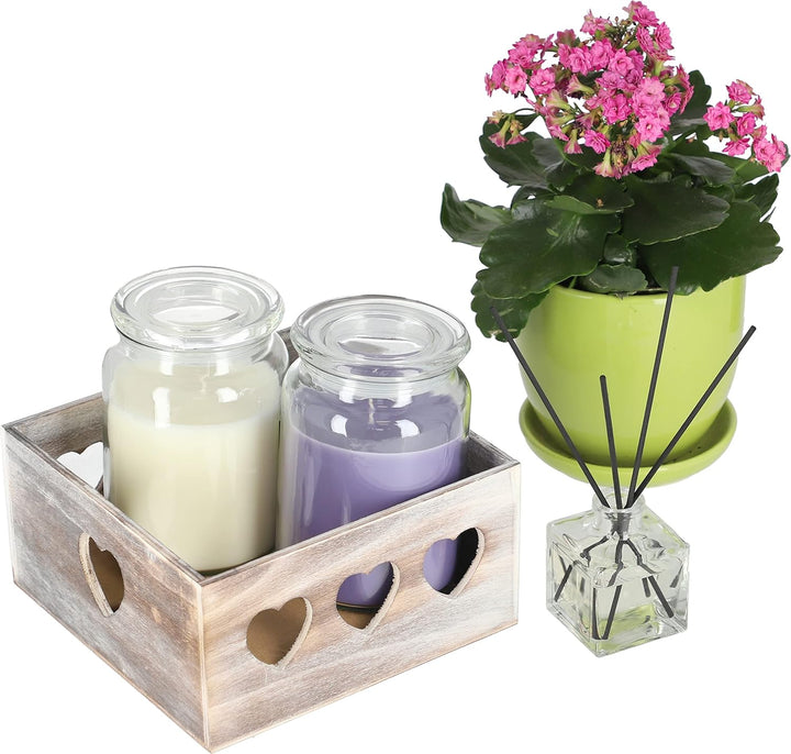 - EINE EINZIGARTIGE KISTE AUS HOLZ MIT EINER DEKORATIVEN BESCHRIFTUNG, HERZEN ODER MOTIVEN. Ein interessantes Design in Form von abgeriebener Farbe verleiht der Box eine tolle Ausstrahlung in fast jeder Umgebung. Sie können darin Blumen oder bunte Kerzen