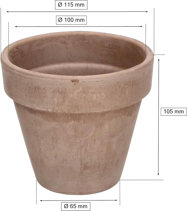 - 🌷 TECHNISCHE DATEN - Blumentopf Mokka ⌀ 11 cm – Höhe: 105 mm, Aussendurchmesser: 115 mm, Innendurchmesser: 100 mm, Bodendurchmesser: 65 mm, Farbe: Mokka, Material: nicht glasierte Keramik, Gewicht: 0,386 kg