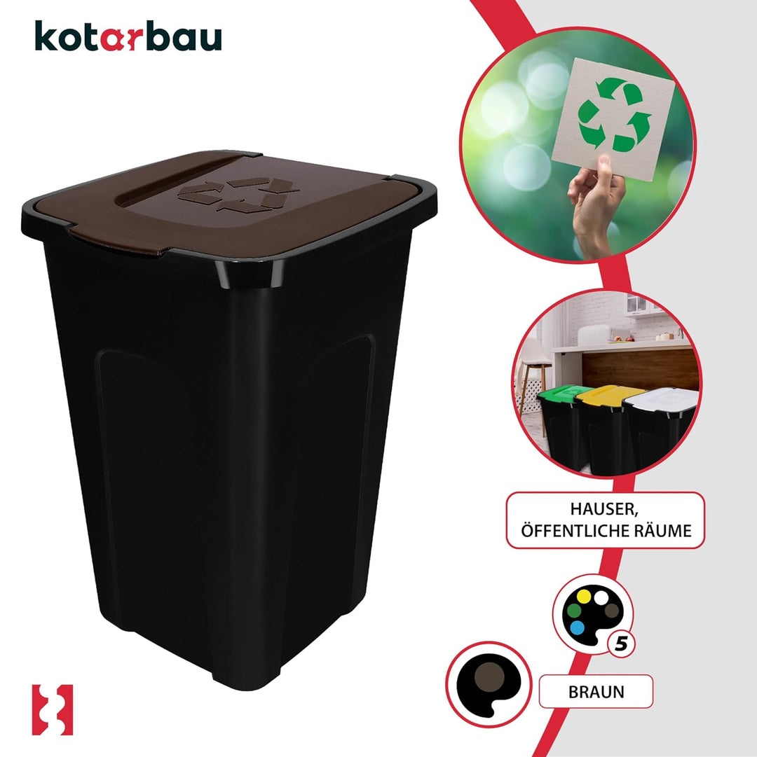 - DAUERHAFT | Der Mülleimer 50l mit Deckel in Braun ist nicht nur leicht und einfach zu transportieren, sondern auch langlebig und robust. Der Mülleimer gross 50l ist für einen langjährigen Gebrauch geeignet, vor allem draussen.