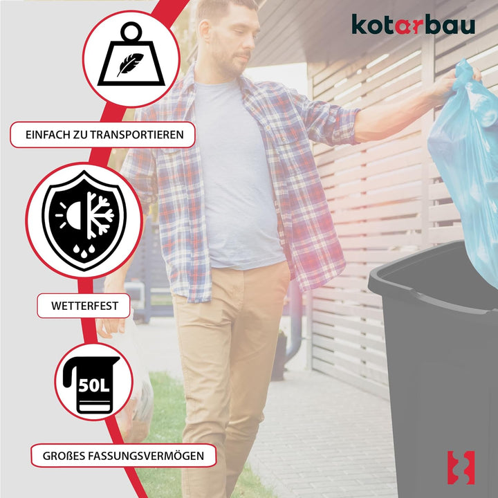 - GROSS | Der Eimer mit Deckel 50 Liter bietet viel Platz für die Mülltrennung und macht es Ihnen leicht, zu Hause, im Büro oder in öffentlichen Bereichen für Ordnung zu sorgen. Dies ist eine Standardkapazität, die in jedem Raum funktioniert.