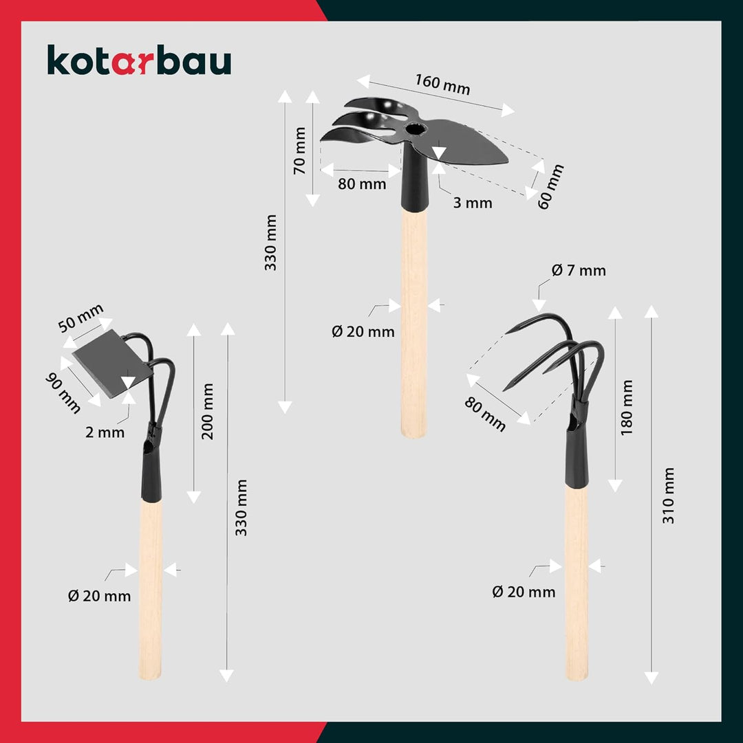 • KOMPLETTER GARTENGERÄTE SATZ – Wenn Sie sich über die Schönheit Ihrer Beete und Steingärten freuen möchten, müssen Sie sich mit unserer unverzichtbaren und praktischen... kompletten KOTARBAU Kleinwerkzeugset ausrüsten, das Ihnen bei der