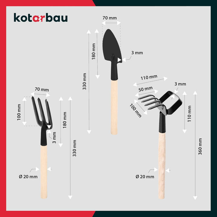 KOTARBAU® Gartenwerkzeug Satz 6tlg. Mini Gärtnerwerkzeug Forke Grubber Rechen Hacken Spaten Doppelha