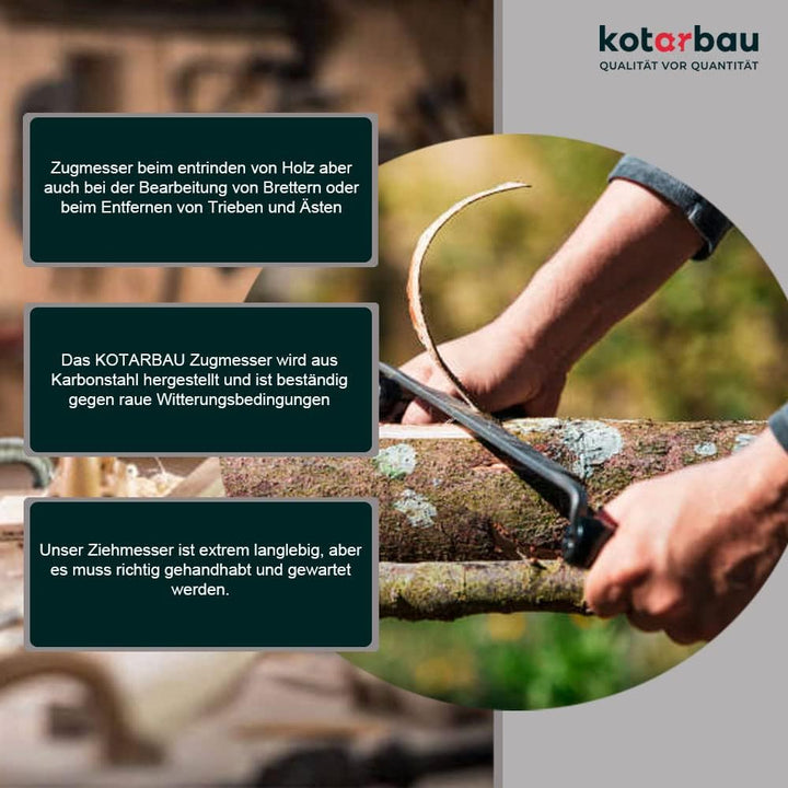 - PRAKTISCH – Das KOTARBAU Geschmiedete Zugmesser ist behilflich beim entrinden von Holz aber auch bei der Bearbeitung von Brettern oder beim Entfernen von Trieben und Ästen. Mit dem Zugmesser arbeiten Sie, indem Sie es zu sich ziehen, was eine viel
