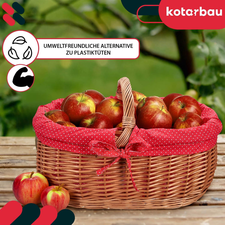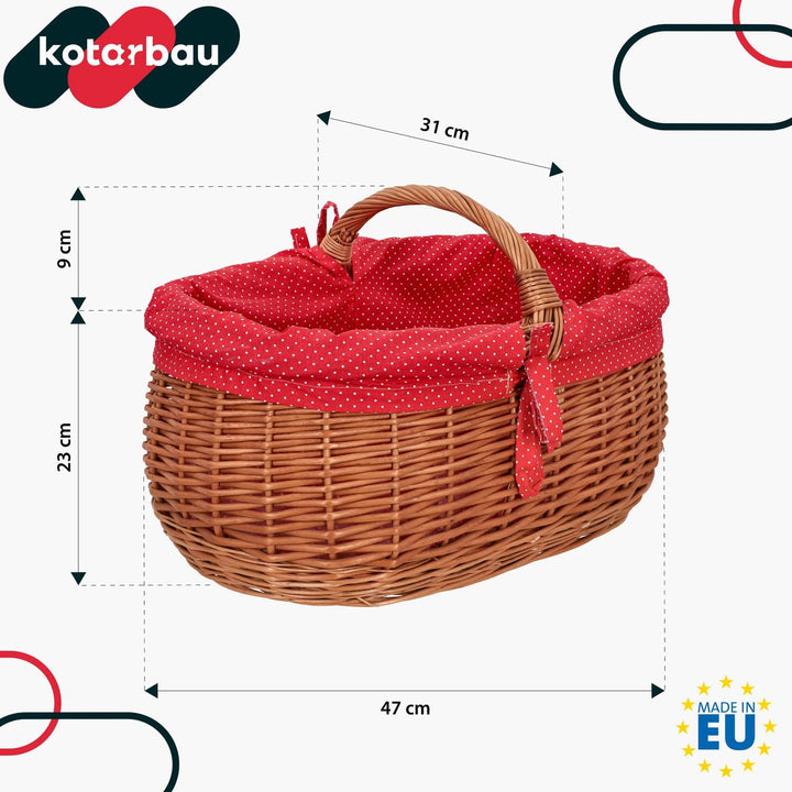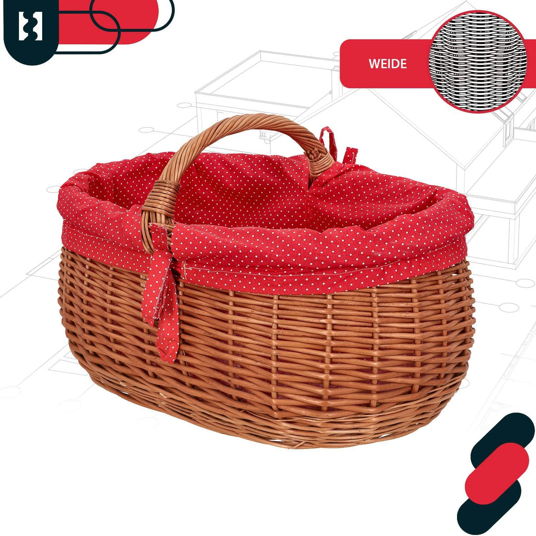 - ELEGANT | Der Einkaufskorb Weide mit roter Stoffeinlage sieht elegant und stilvoll aus – ein sofortiger Blickfang. Die farbenfrohe rote Stoffeinlage bietet einen attraktiven Kontrast und macht den Weinkorb sowohl praktisch als auch dekorativ.
