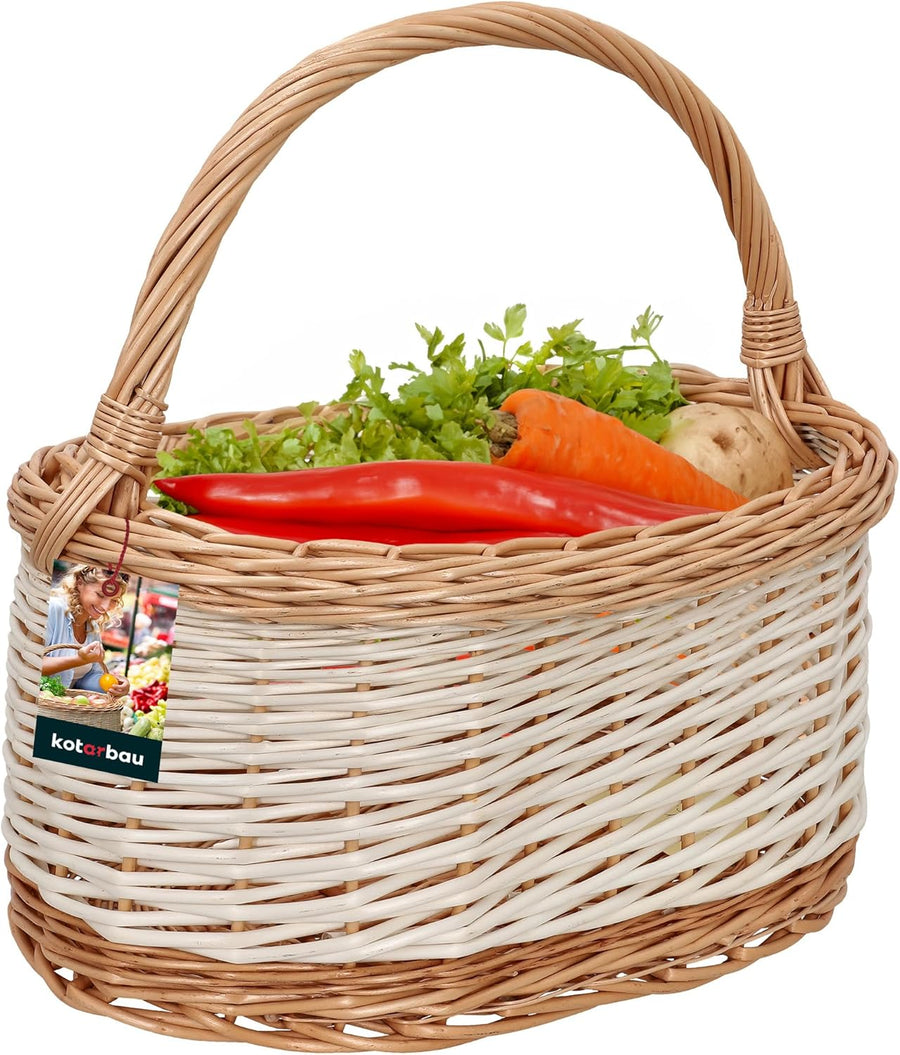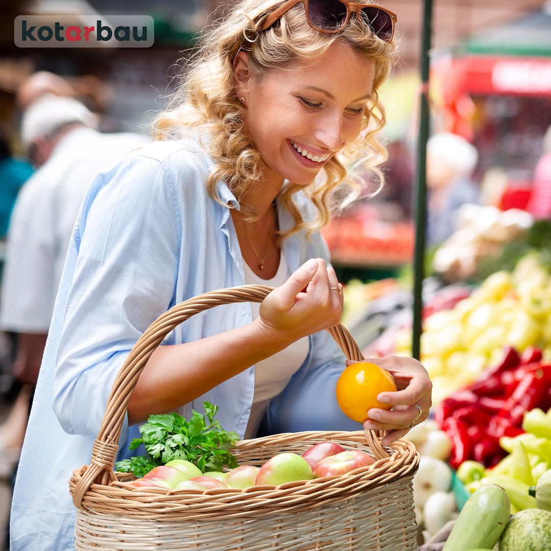 - GROSS | Der Weidenkorb mit Henkel hat ein grosses Fassungsvermögen. So kann man bequem viele Produkte gleichzeitig aufbewahren. Ein geflochtener Einkaufskorb Weide von KOTARBAU ist lebensmittelgeeignet und daher eine gute Alternative zu Plastiktüten.