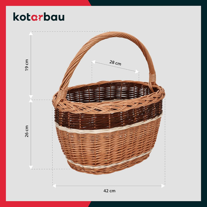 - GROSS | Der Weidenkorb mit Henkel hat ein grosses Fassungsvermögen. So kann man bequem viele Produkte gleichzeitig aufbewahren. Ein geflochtener Einkaufskorb Weide von KOTARBAU ist lebensmittelgeeignet und daher eine gute Alternative zu Plastiktüten.