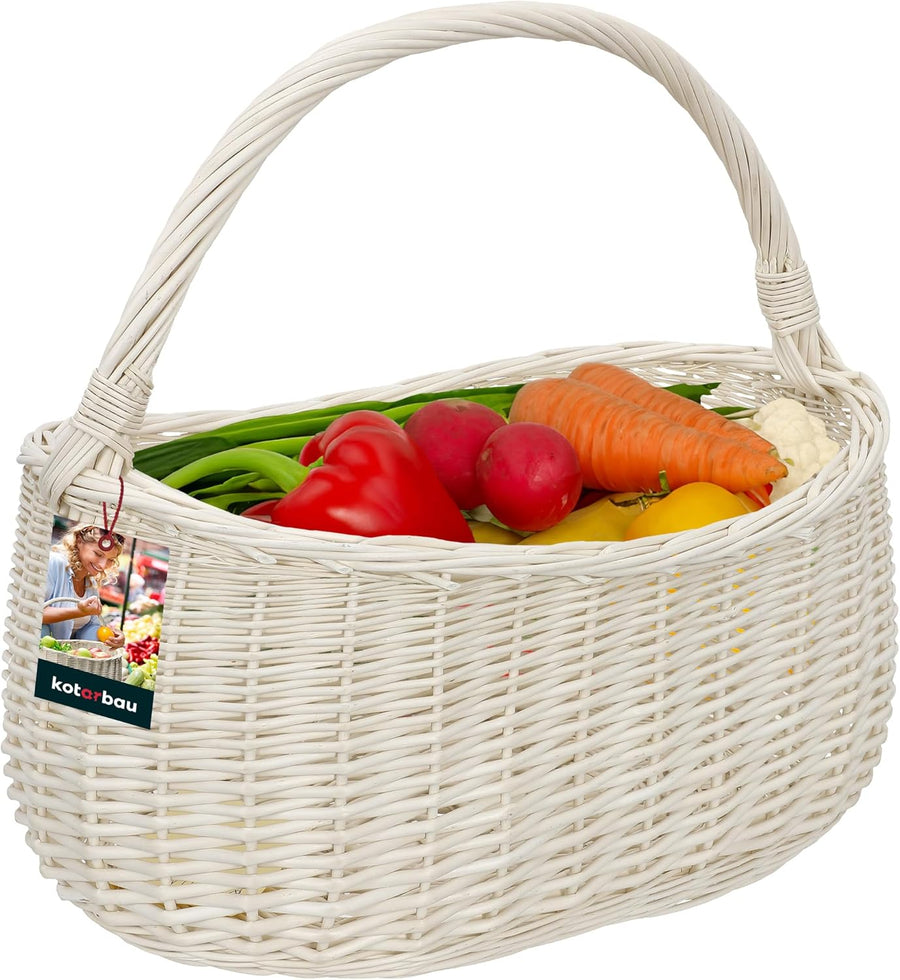 KOTARBAU® Weidenkorb Einkaufskorb geflochten 440 x 280 mm Korb aus Weide Weiss gross Einkaufskorb ge