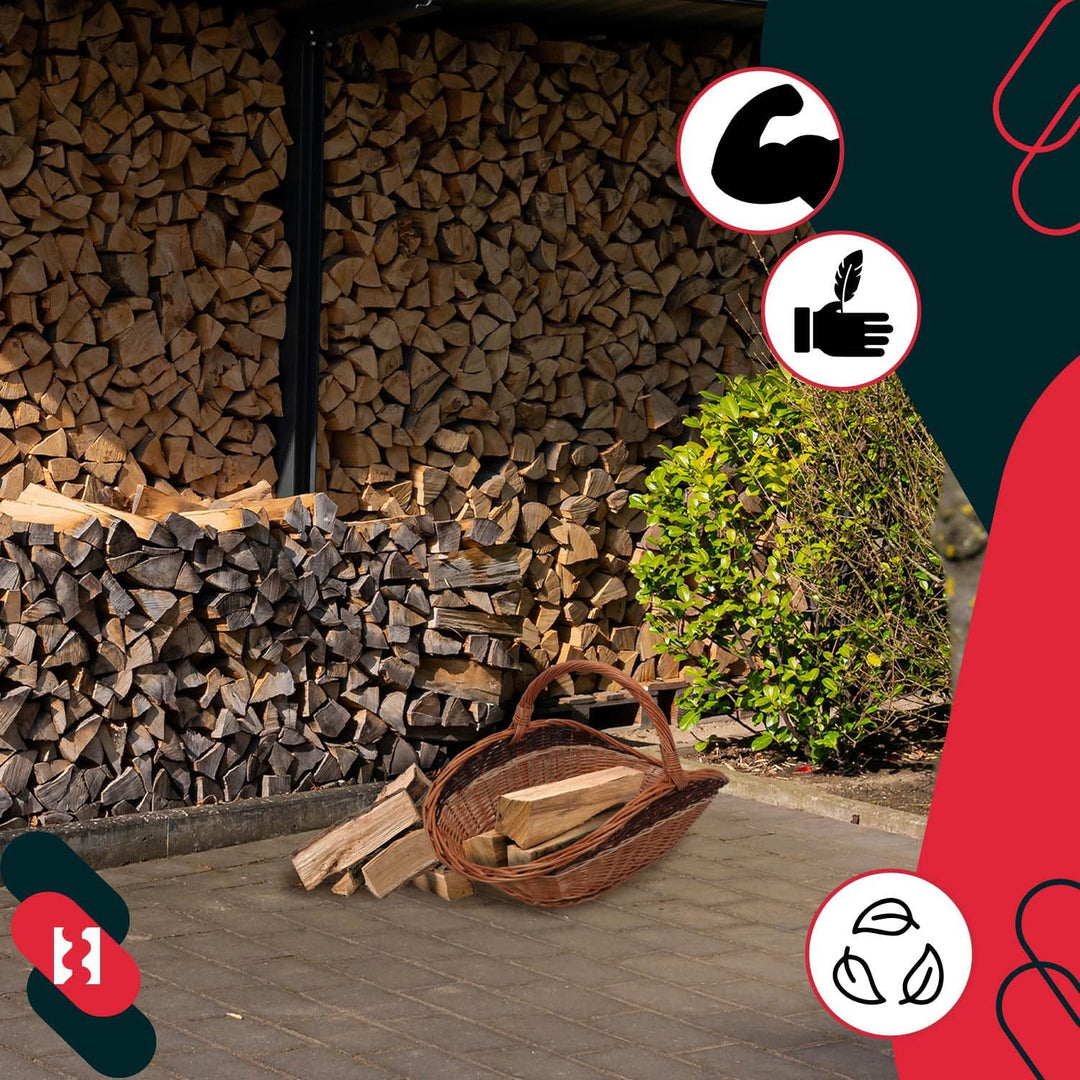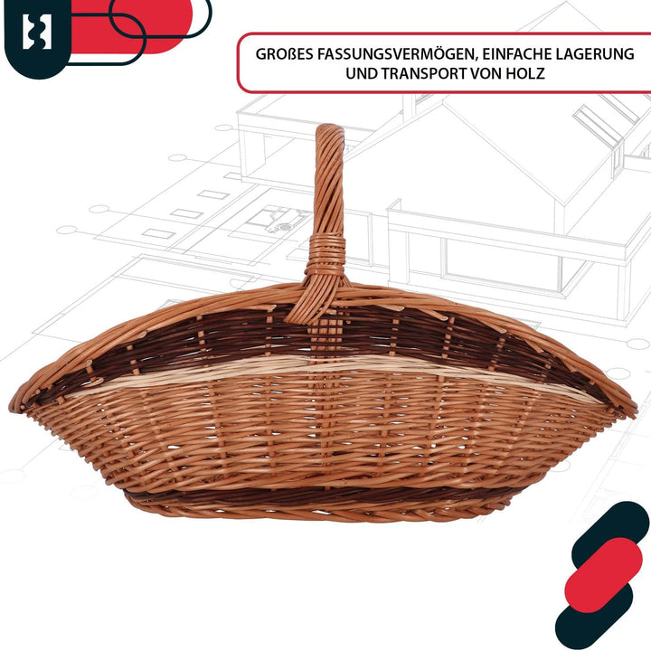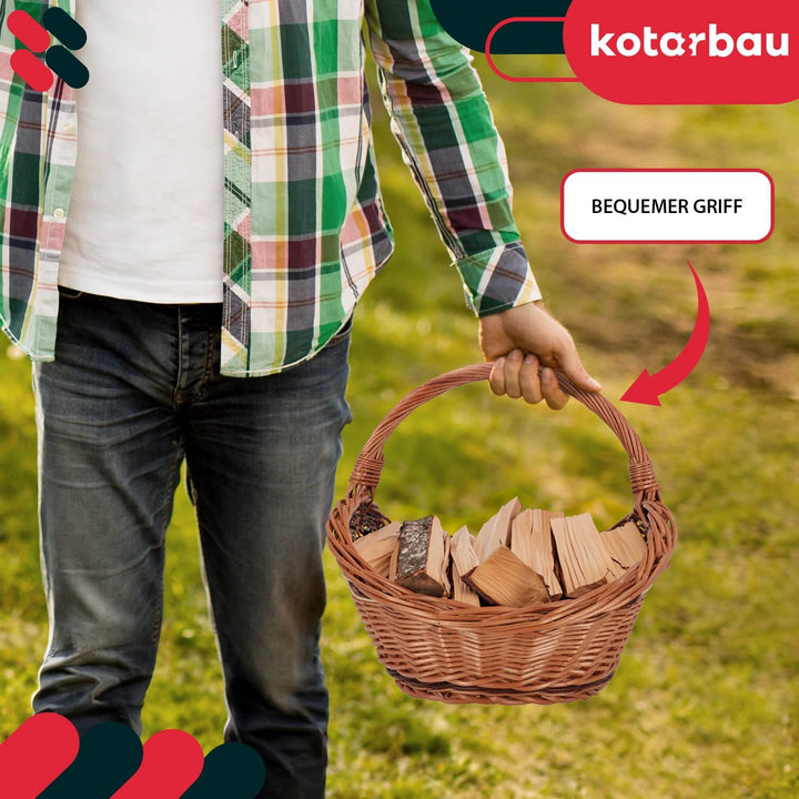 - FUNKTIONAL: Der Weidenkorb gross ist ein praktischesAccessoire, das sich sowohl für den alltäglichen Gebrauch als auch fürbesondere Anlässe eignet. Die leichte, aber robuste Konstruktion erleichtertden Transport von Brennholz. Der gut geformte Henkel
