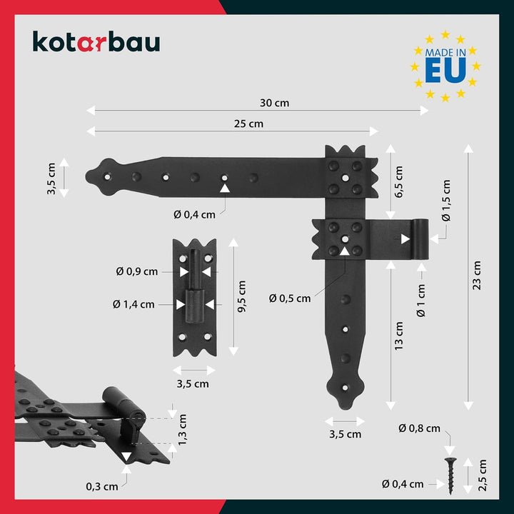 • UNIVERSALITÄT – Die Türbänder-Schmiedeeisen eignen sich zur Montage auf vielen Materialien: Holz, Metall, Ziegel. Das Produkt zeichnet sich durch einen bereiten Einsatzbereich aus. Die Winkelbänder werden vor allem zur Montage von Fensterläden