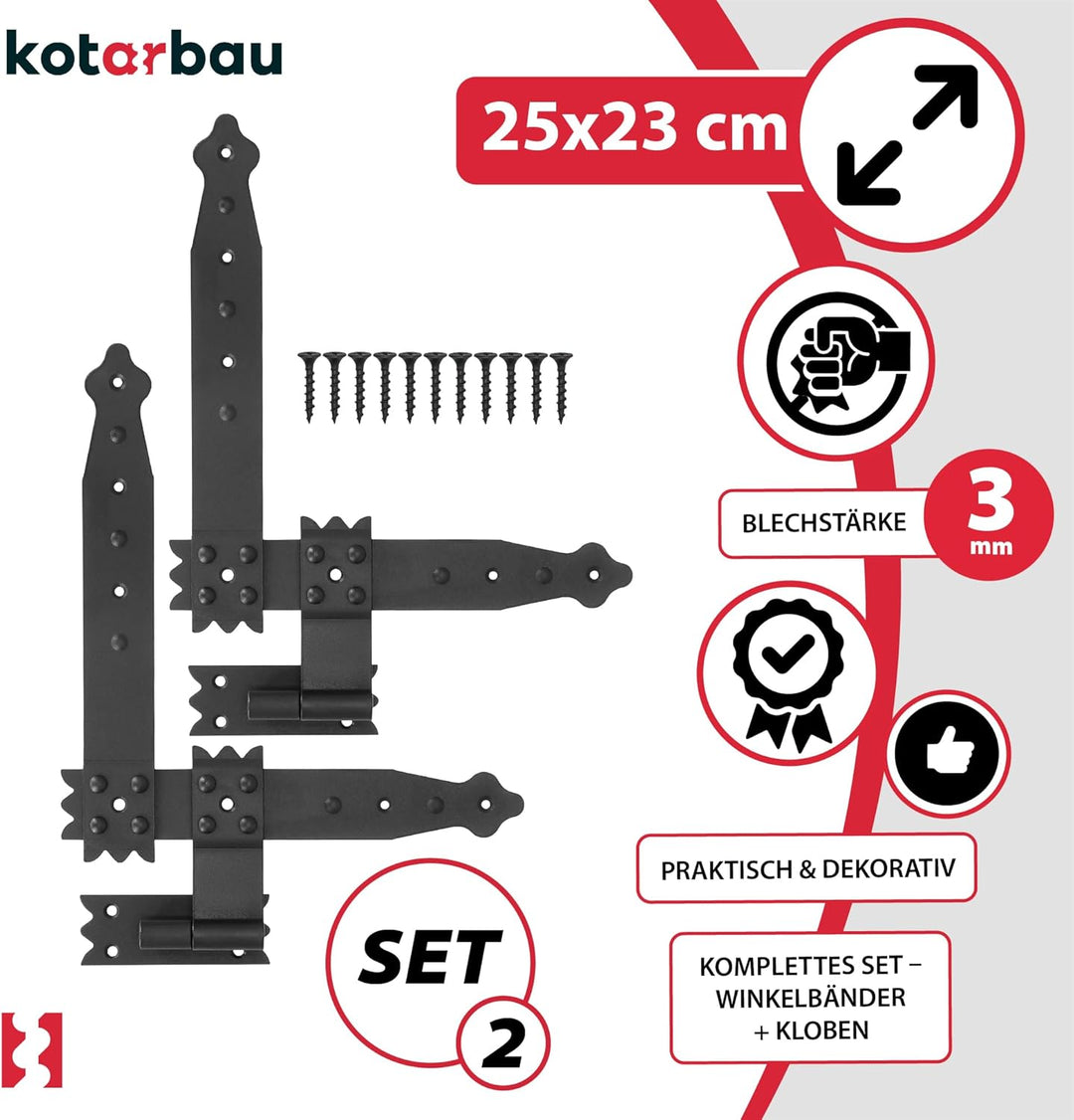 KOTARBAU® Winkelband 250 x 230 mm mit Kloben Fensterladenband Winkelscharnier Türband Torband Schwar