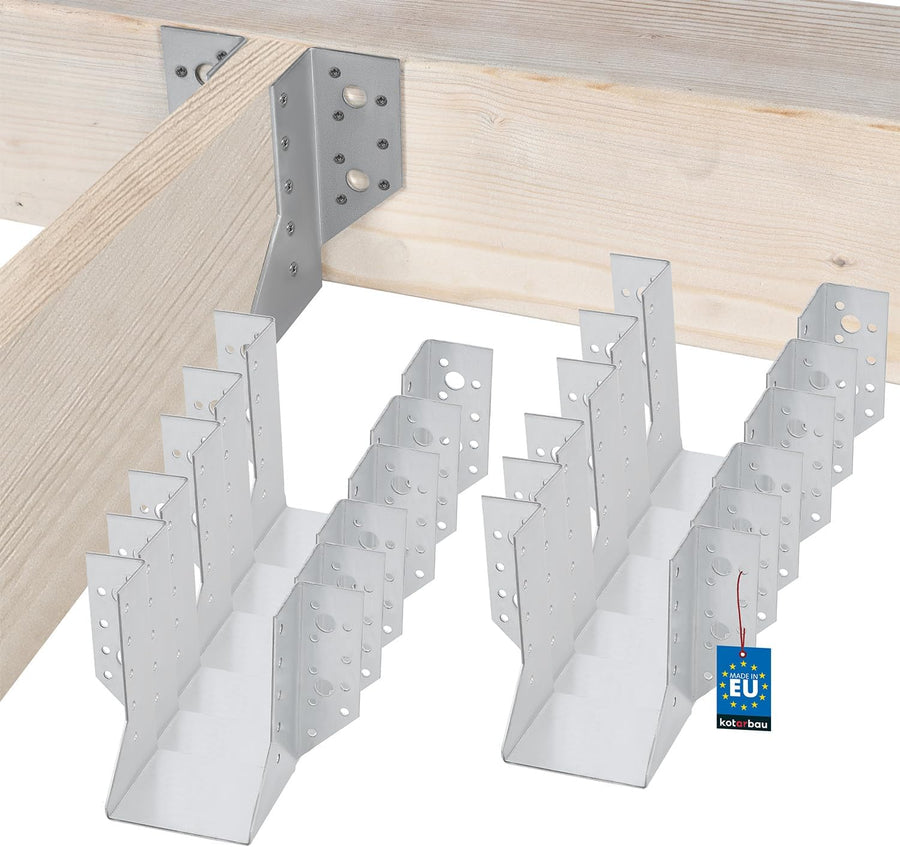 - LANGJÄHRIGE NUTZUNG – Der KOTARBAU Balkenverbinder besteht aus verzinktem Stahlblech, der den Balken schützt, nicht rostet und gegen Witterungseinflüsse, Feuchtigkeit, Stösse und Belastungen beständig ist. Der Holzbalkenverbinder ist auch