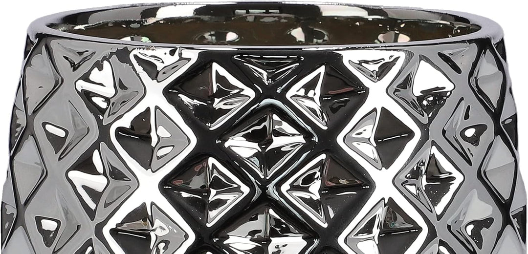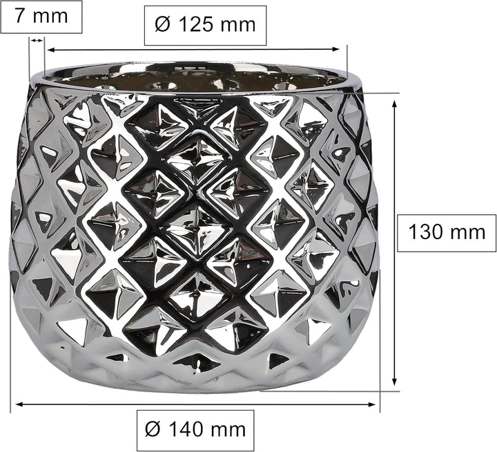 - 🌷 TECHNISCHE DATEN - Blumentopf Silber – Höhe: 130 mm, Bodendurchmesser: 140 mm, Innendurchmesser: 125 mm, Stärke: 7 mm, Material: glasierte Keramik glänzend, Farbe: Silber, Gewicht: 640 g