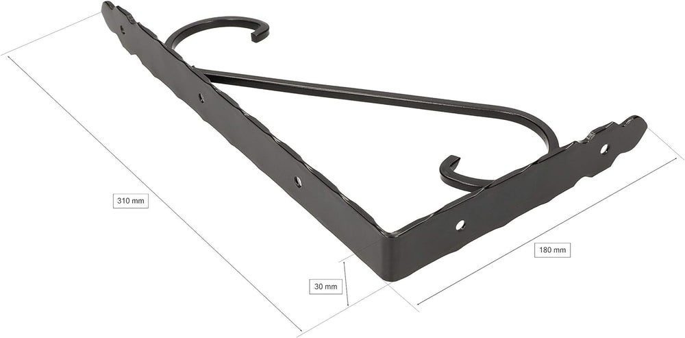 - TECHNISCHE DATEN - Winkelhalterung 30x15cm – Höhe: 310mm, Tiefe: 180mm, Breite: 30mm, Material: Stahl, Oberfläche: Pulverbeschichtet, Farbe: Schwarz, Gewicht: 485g