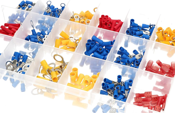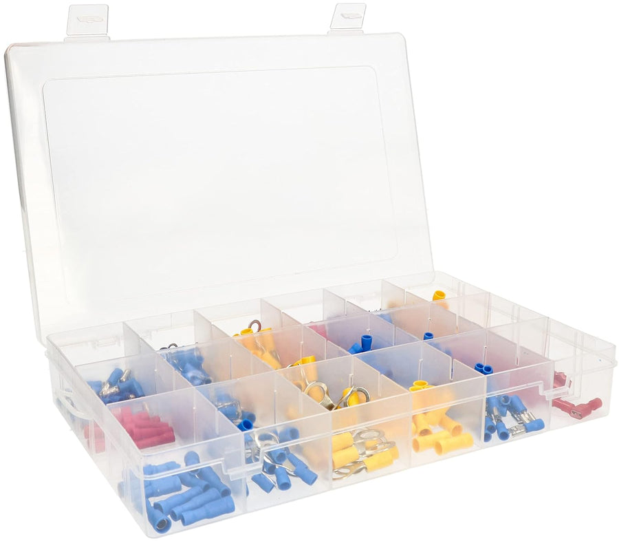- TECHNISCHE DATEN - Der Satz enthält: 22-18 Flachstecker 30 Stk. 22-18 Flachstecker 10 Stk. 22-18 Flachstecker 10 Stk. 22-18 Flachhülse 10 Stk. 16-14 Rohrstecker 25 Stk. 16-14 Rohrhülse 10 Stk. 16-14 Ringverbinder 2-5 30 Stk. 16-14 Ringverbinder 1/4