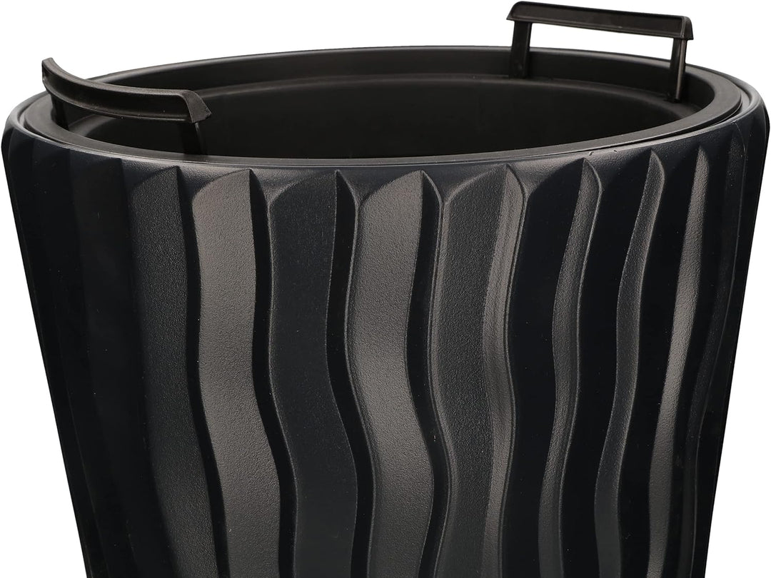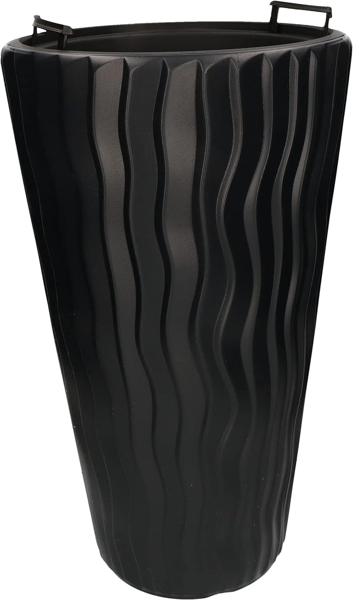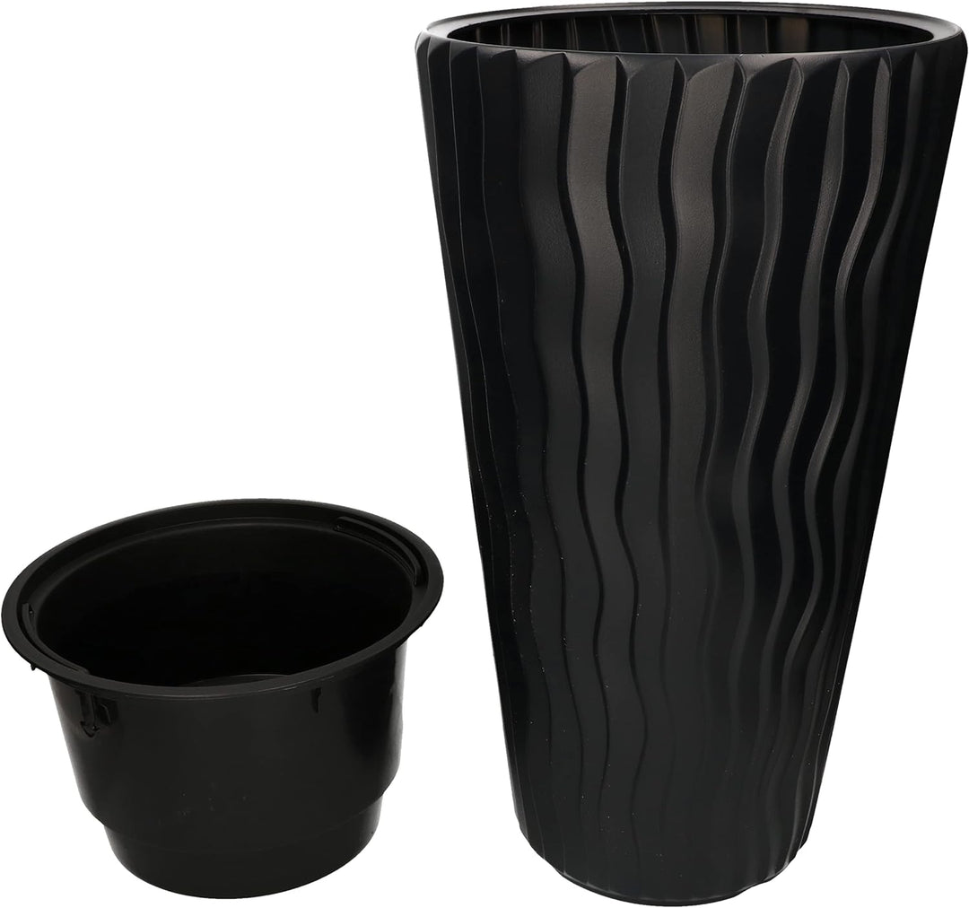 - TECHNISCHE DATEN – Blumentopf Anthrazit – Höhe: 515mm, Durchmesser Oberkante: 297mm, Durchmesser Unterkante: 190mm, Material: Kunststoff, Farbe: Anthrazit, Innentopf – Höhe: 180mm, Durchmesser Oberkante: 235mm, Farbe: Schwarz, Gewicht Set: 1kg