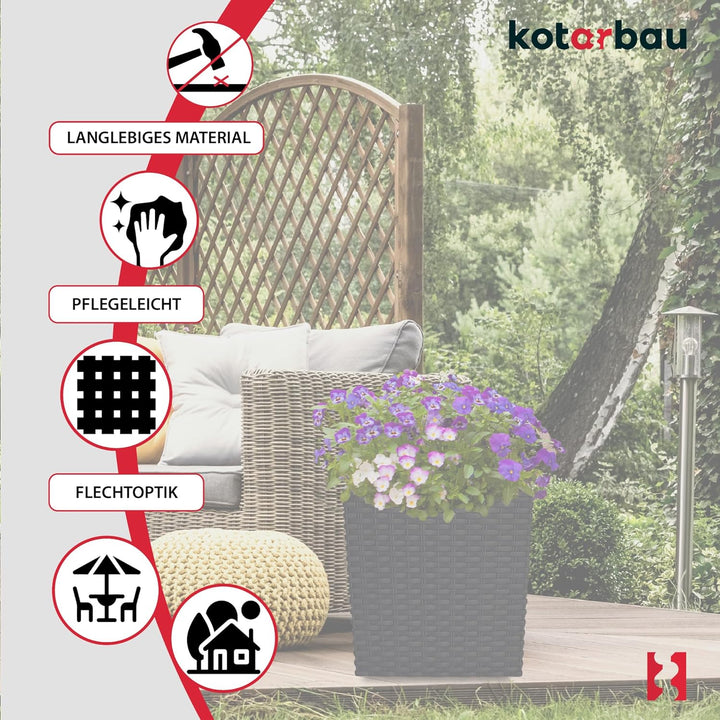 - LANGJÄHRIGE NUTZUNG – Der KOTARBAU Pflanzkübel hat ein Muster, das Weidengeflecht imitiert, was es elegant und originell macht. Er besteht aus Kunststoff und ist daher beständig gegen niedrige Temperaturen, UV-Strahlung sowie Kratzer zudem ist das