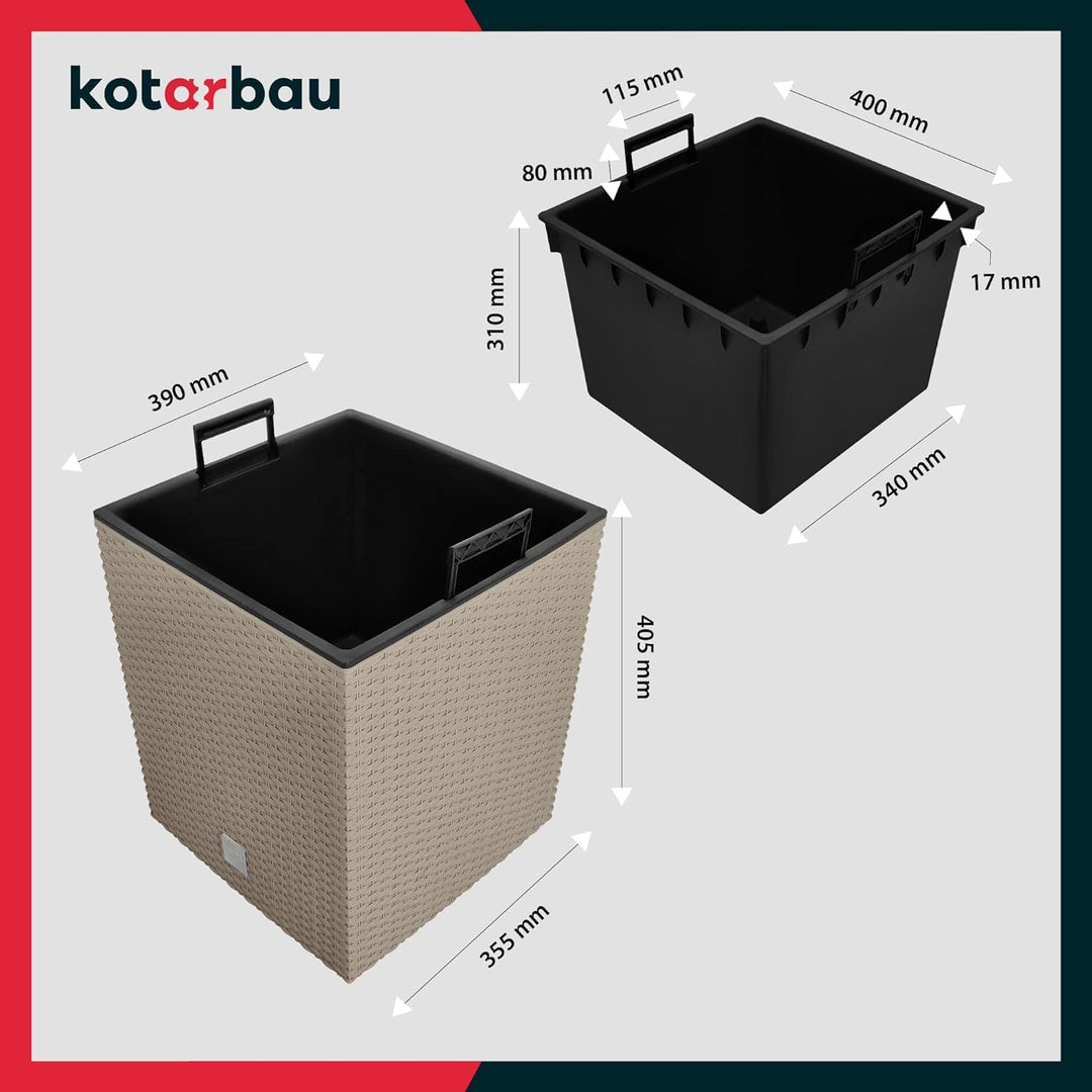 KOTARBAU® Blumentopf 400 mm Mocca Übertopf mit Innentopf für Pflanzenzucht 400x400x408 mm Mocca, 400