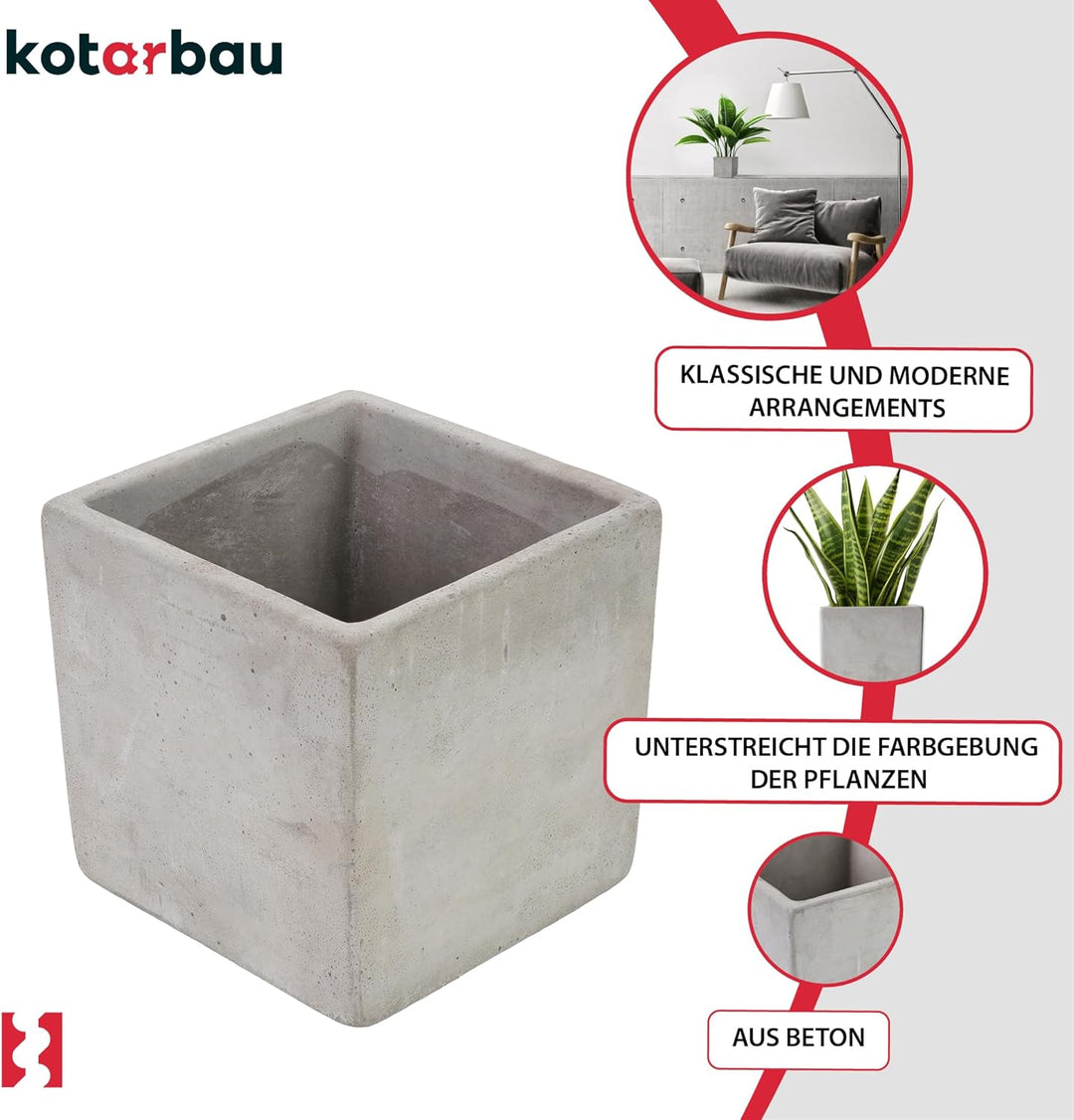 - DAS SCHLICHTE DESIGN DES KOTARBAU BLUMENKÜBELS MACHT IHN ZU EINER PERFEKTEN DEKORATION FÜR DIE WOHNUNG, DAS BÜRO ODER DEN GARTEN. Sie hebt die Farbe der Pflanzen hervor und setzt sie auf besondere Weise in Szene. Der einzigartige Beton-Pflanztopf ist