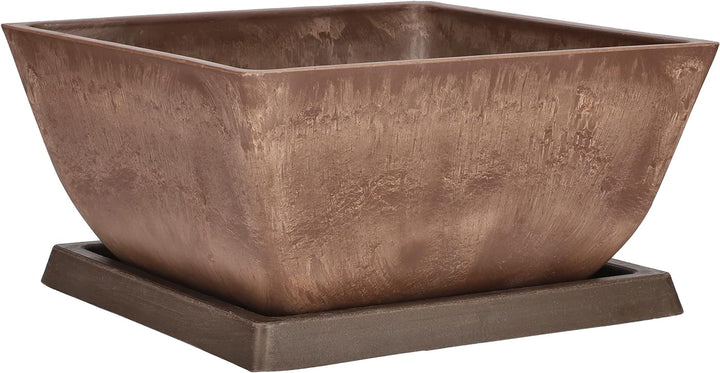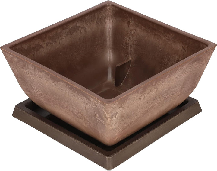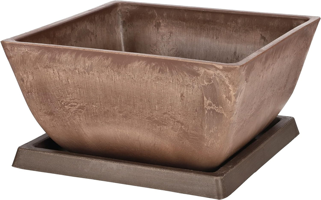 • 🌷 TECHNISCHE DATEN - Töpfe aus recycelten Materialien: Holz, Stein und Kunststoff (60% Kunststoff + 30% Steinstaub + 10% Holzstaub) + hochwertiger Farbstoff. Untersetzer inklusive. Blumentopf braun - Gewicht: 1123 g - Abmessungen - Breite: 250 mm -