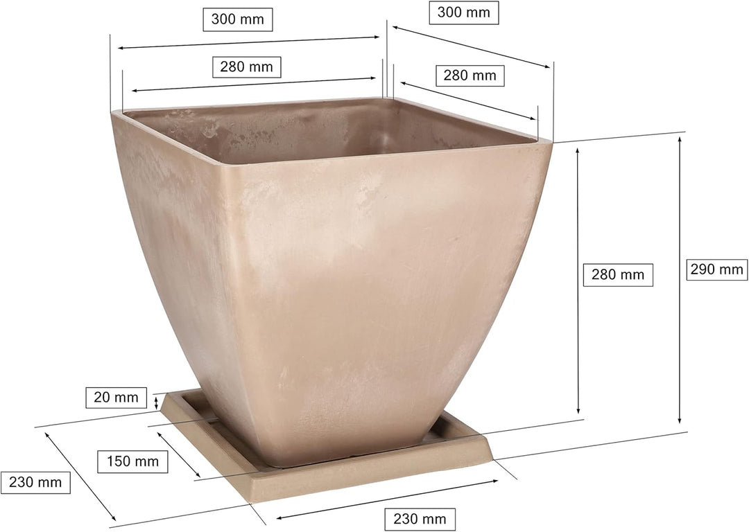 - 🌻 TECHNISCHE DATEN - Blumentöpfe aus recycelten Materialien: Holz, Stein und Kunststoff (60% Kunststoff + 30% Steinstaub + 10% Holzstaub) + hochwertiger Farbstoff. Untersetzer inklusive. Blumentopf in Taupe - Gewicht: 2,2 kg - Abmessungen - Breite:
