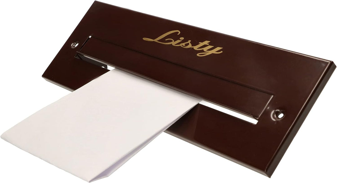 - TECHNISCHE DATEN - Briefeinwurf Braun Teil I - Breite: 275 mm, Höhe: 90 mm, Abmessungen der Löcher: 220x25 mm, Durchmesser des Befestigungslochs: 4 mm Teil II - Gesamtbreite: 275 mm, Abmessungen des Deckels: 250x75 mm, Höhe: 75 mm, Durchmesser der