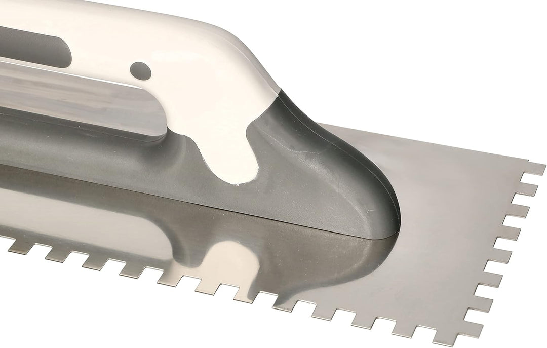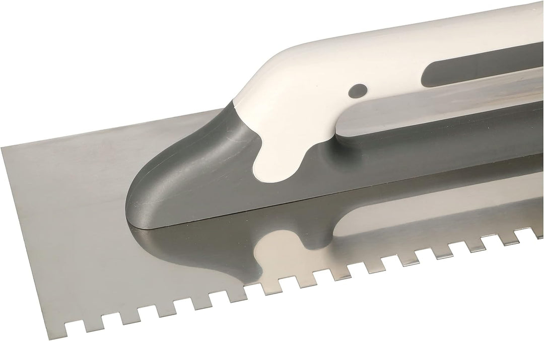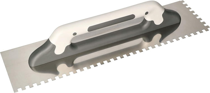 - TECHNISCHE DATEN - Zahnspachtel 8x8 mm - Länge: 472 mm, Breite: 122 mm, Stärke 1 mm, Zahnmasse: 8x8 mm, Länge des Griffs: 370 mm, Material: Edelstahl, Kunststoff