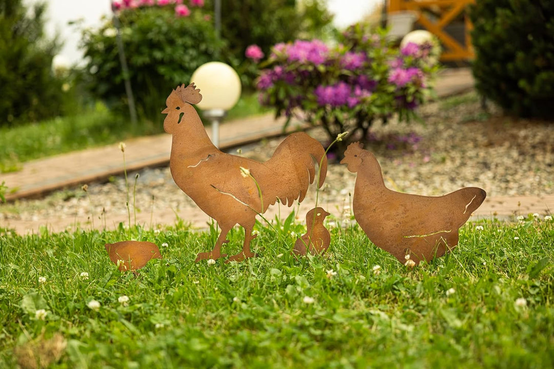 KOTARBAU® Gartendekoration Rostfiguren Hühner Garten-Stahldesign Edelrost Dekoration Gartenstecker,
