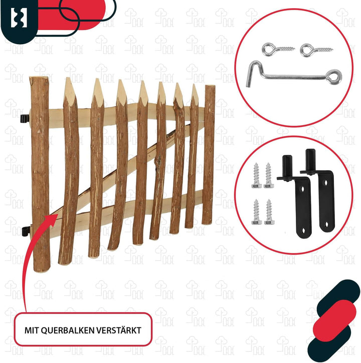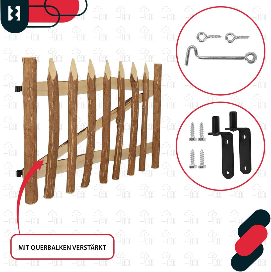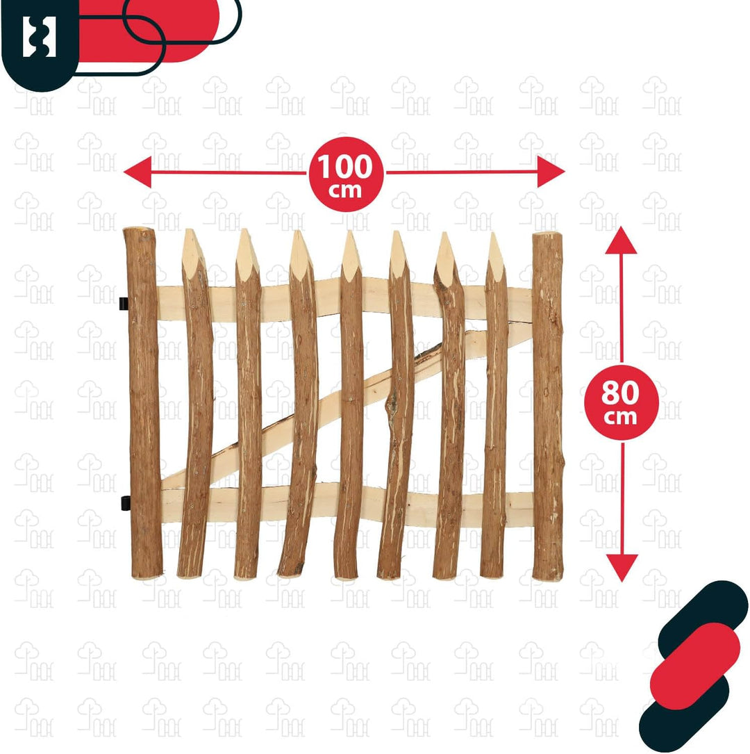 - ✔️ TECHNISCHE DATEN - Pforte für Naturholz-Lattenzaun M593 - Höhe: 80 cm - Gewicht: 11,094 kg - Breite: 100 cm - Abstand zwischen den Scharnieren: 43,5 cm