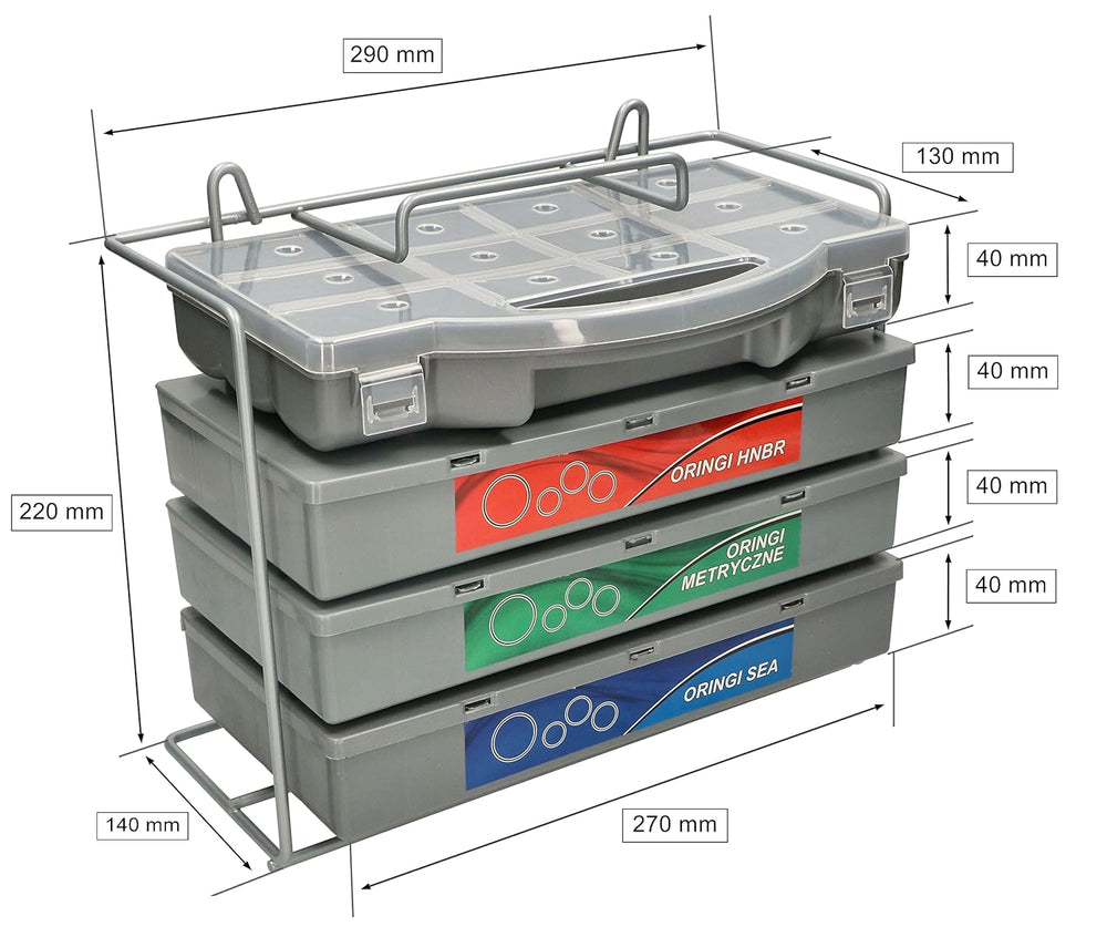 - DAS KOTARBAU O-RING-SET IST IN SEHR PRAKTISCHEN FÄCHERN SORTIERT. Der handliche Koffer hat zusätzlich Fächer. Die Schubladen sind beschriftet und helfen so, die gewünschte Dichtung schnell zu finden. Der Kasten ist mit einem praktischen Griff