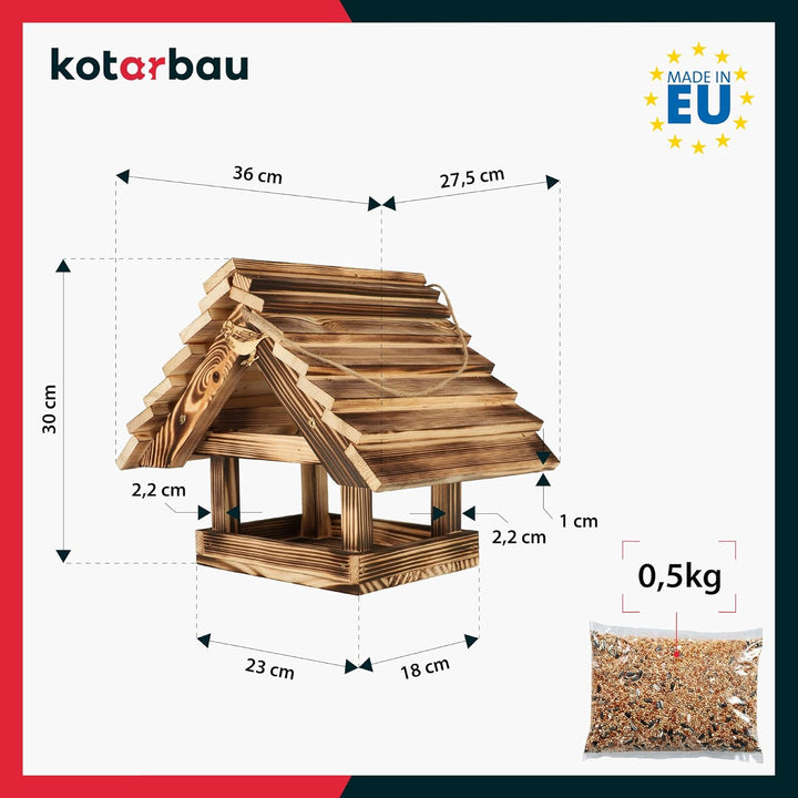 - 2in1 – DER HOCHWERTIGE KOTARBAU FUTTERSTELLE KOMMT MIT FUTTER. Futterhäuschen sind für Vögel lebenswichtig, denn das Futter, das sie dort hinterlassen, hilft ihnen, schwierige Zeiten zu überstehen. Um den Vögeln die Futtersuche zu erleichtern, die