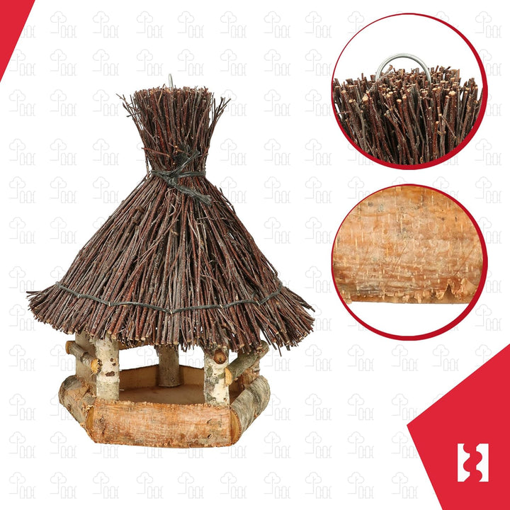 - TECHNISCHE DATEN - Höhe: 400 mm, Basisbreite: 240 mm, Dachdurchmesser: 330 mm, Dachhöhe: 280 mm, Material: Holz, Eigengewicht des Futterspenders: 2,090 kg, Gewicht der Futters: 0,5 kg