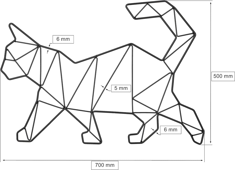 - TECHNISCHE DATEN - Katzen-Bild - Höhe: 500 mm, Breite: 700 mm, Drahtstärke: 5, 6 mm, Material: Metall, Gewicht: 1,106 kg, Farbe: schwarz Detaillierte Abmessungen finden Sie in der Produktgalerie.