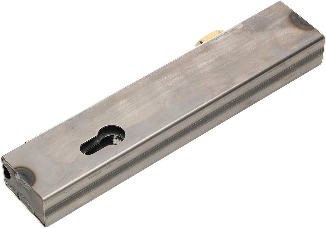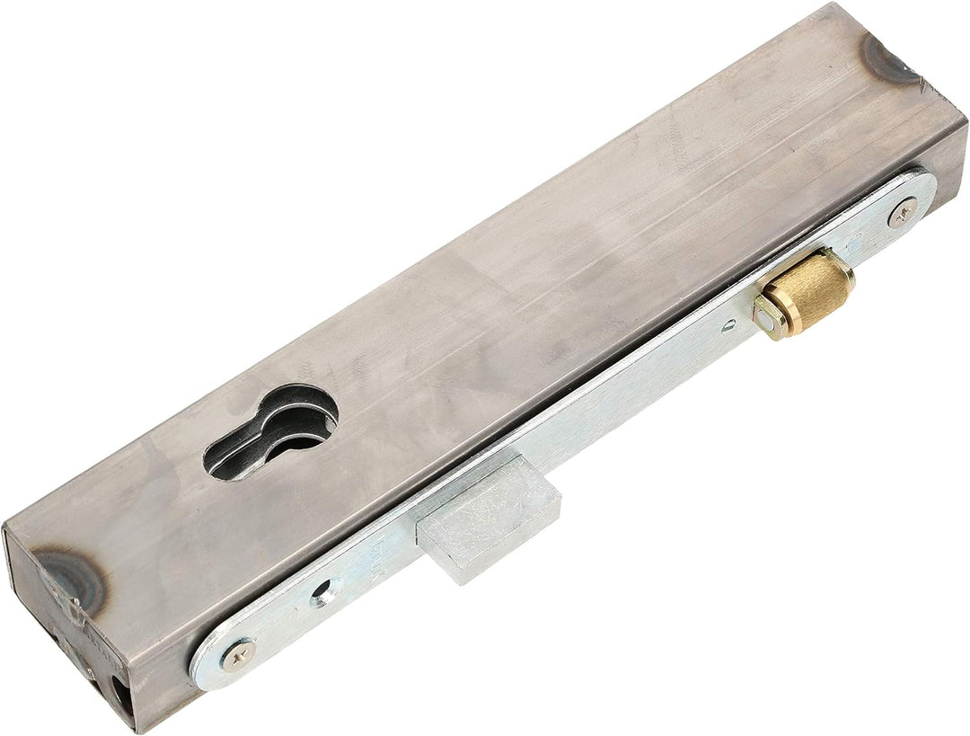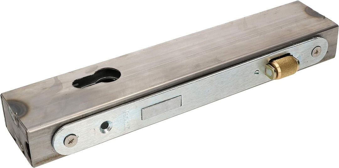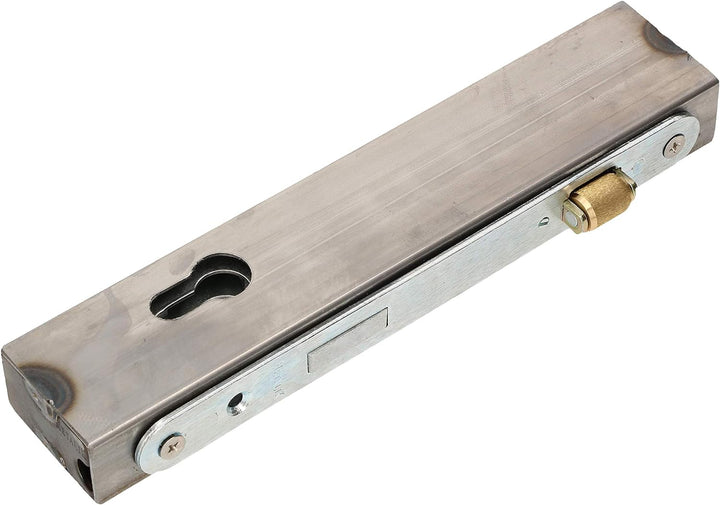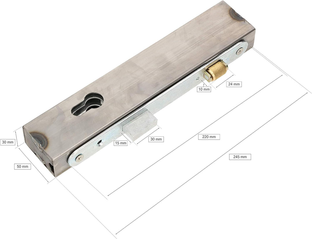 - TECHNISCHE DATEN – Kasten – Höhe: 245mm, Länge: 50mm, Breite: 30mm, Schloss – Stulplänge: 220mm, Fallenmass: 30x15mm, Rollenmass: 24x10mm, Material Kasten: Stahl, Oberfläche Kasten: roh, Material Schloss: Stahl, Oberfläche Schloss: verzinkt,