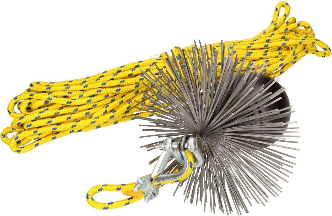 • ROBUSTHEIT- Dank der professionellen und sehr hochwertigen Verarbeitung vom gesamten Rauchfangkehrer SET, erfolgt das Reinigen sehr einfach und schnell. Die Gewichtkugel als auch der Fegebesen sind sehr robust und garantieren uns einen sehr langen Nutzzeitraum. Das Seil ist strapazierfähig und reissfest auch nach mehreren Jahren. Der Federstahl ist so produziert worden, dass auch ein gröberes Reinigen die Borsten nicht beschädigt oder verbiegt.