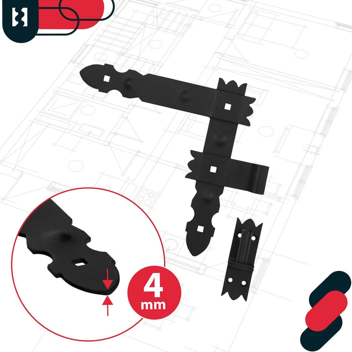 • UNIVERSALITÄT – Die Türbänder-Schmiedeeisen eignen sich zur Montage auf vielen Materialien: Holz, Metall, Ziegel. Das Produkt zeichnet sich durch einen bereiten Einsatzbereich aus. Die Winkelbänder werden vor allem zur Montage von Fensterläden