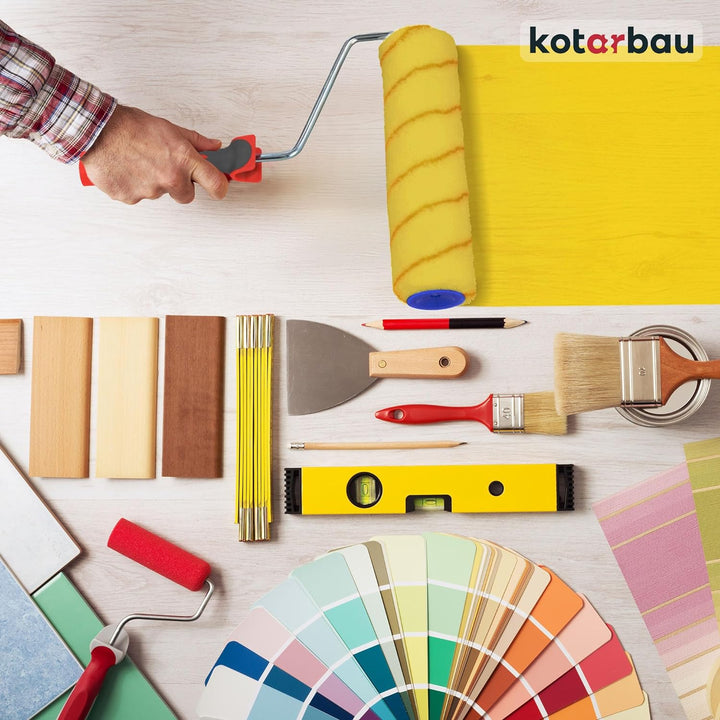 - EIGENSCHAFTEN – Der KOTARBAU Farbroller zeichnet sich durch eine lange Lebensdauer und Beständigkeit gegen alle aggressiven Lösungsmittel aus und eignet sich daher perfekt zum Auftragen von Emulsionen, Latex- und Silikonfarben, Dispersionsfarben,