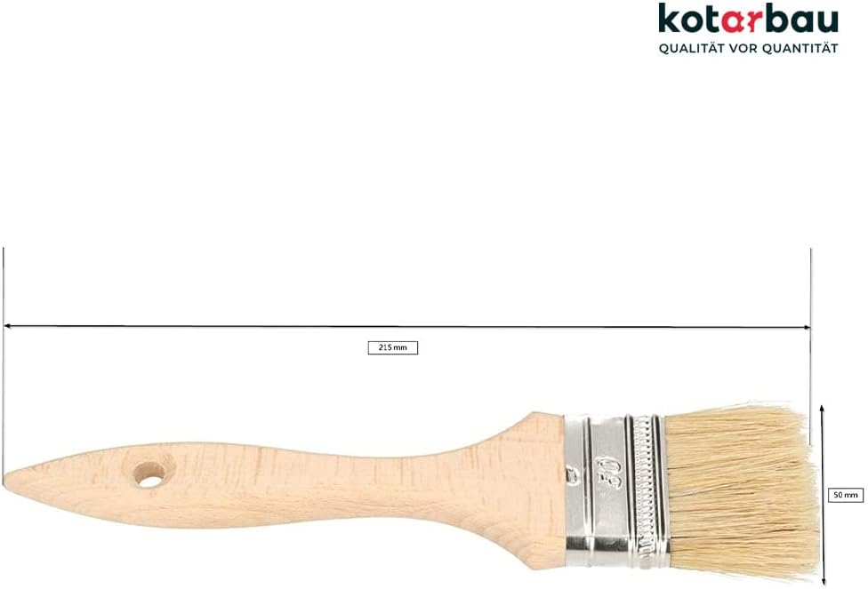 - SICHERHEIT – Die Borsten sind mit Zinn – Pressklemmen befestigt, so dass Sie bedenkenlos und sauber streichen können. Die Pressklammer umfasst nicht nur den Holzgriff sondern auch die Borsten, somit fallen weder Borsten ab, noch bleiben sie an der