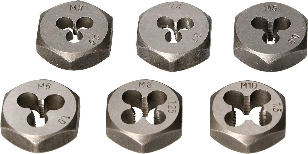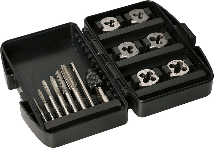 - DER KOMPLETTE KOTARBAU SATZ besteht aus Gewindebohrern: M3x0,5 mm, M4x0,7 mm, M5x0,8 mm, M6x1,0 mm, M8x1,25 mm, M10x1,5 mm, Gewindeschneidern: M3, M4, M5, M6, M8, M10, Windeisen und einem stabilen Kasten.