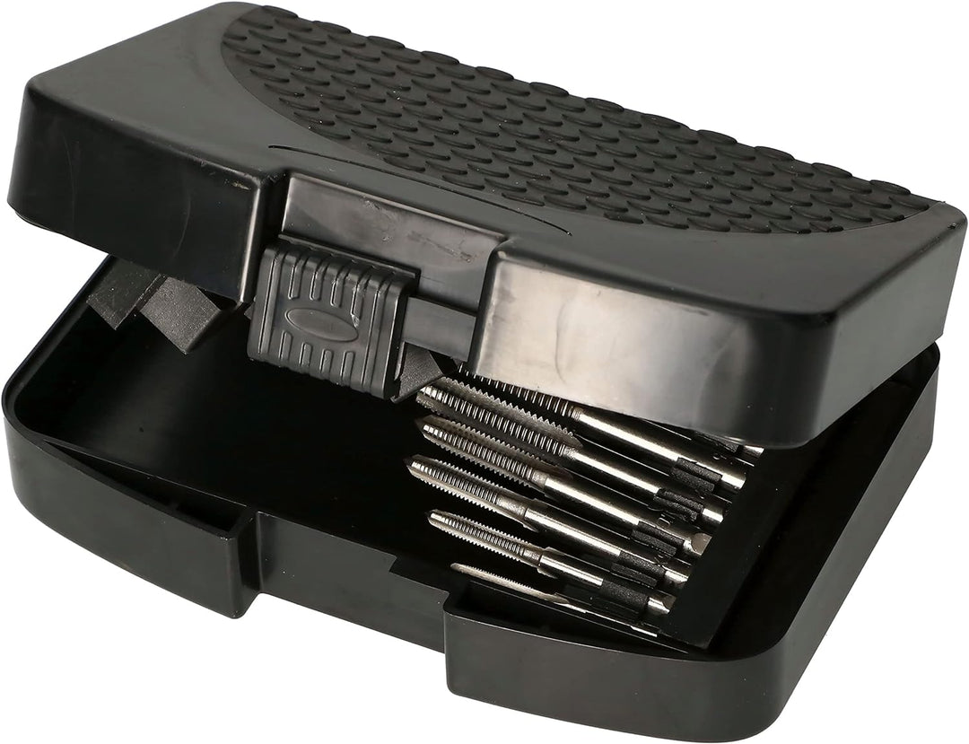 - DER GEWINDESCHNEIDER UND GEWINDEBOHRERSATZ BESTEHT AUS STAHLELEMENTEN. Dadurch haben Sie die Sicherheit, dass es Ihnen viele Jahre in Ihrer Werkstatt dienen wird.