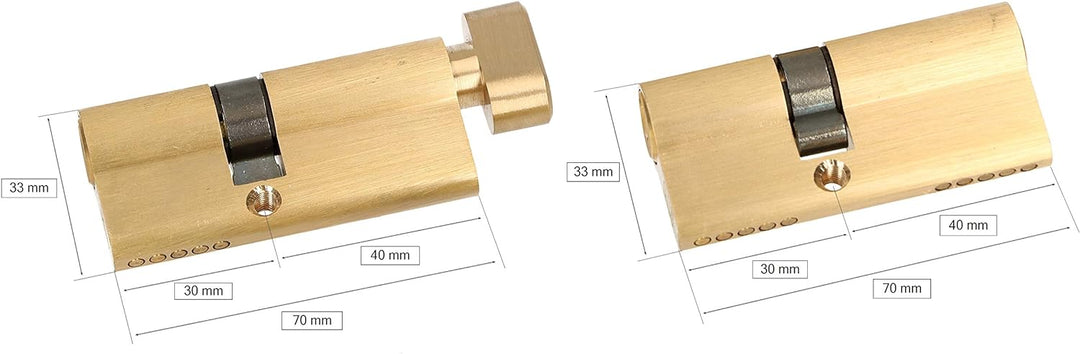 - TECHNISCHE DATEN – Profilzylinder 30x40mm – Masse: 30x40mm, Gesamtlänge: 70mm, Höhe: 33mm, Material: Messing, Farbe: Gold, Gewicht Satz: 455g