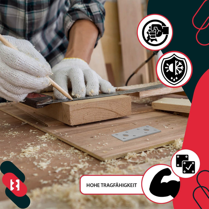 • ROBUSTHEIT- Der Stahl ist sehr hochwertig und robust. Der Stalverbinder kann bedenkenlos hohen Spannungen ausgesetzt werden. Dadurch, dass der Stahl verzinkt ist, müssen wir uns keine Sorgen um Rost machen und können das Flacheisen Innen und Aussen