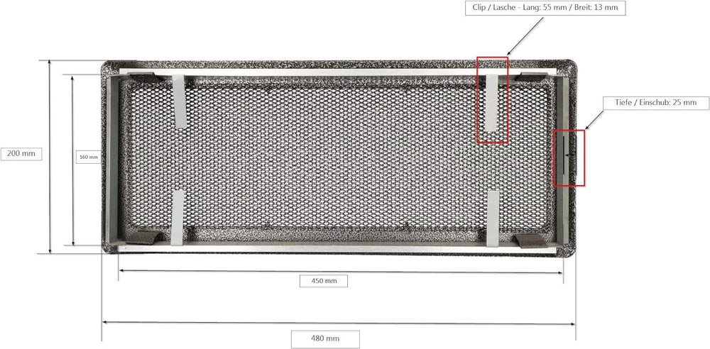 • UNIVERSALITÄT – Das Gitter eignet sich für den Einbau bei Öfen & Kaminen, dank den Montagelaschen ( Clips ) kann das Gitter schnell, sauber und ohne schwerem Werkzeug montiert werden. Das Gitter kann waagrecht oder senkrecht angebracht werden. Das