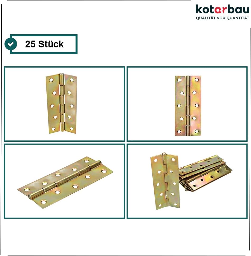 - UNIVERSALITÄT- Die Flügelscharniere eignet sich perfekt für Schatullen in allen Grössen. Dieses Möbelband wird sehr oft für: Kistenscharniere,Türen auf einer Weide, Keller , Schränken, Möbeltüren, Holzkisten, Bartüren, uvm. verwendet. Dieses
