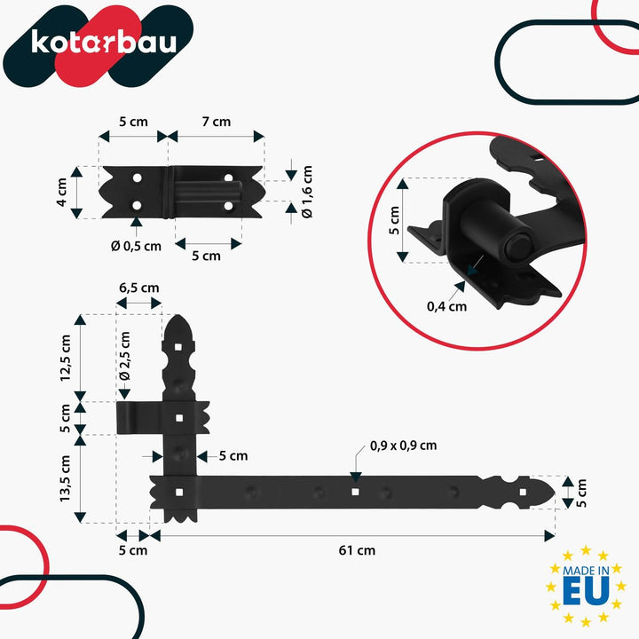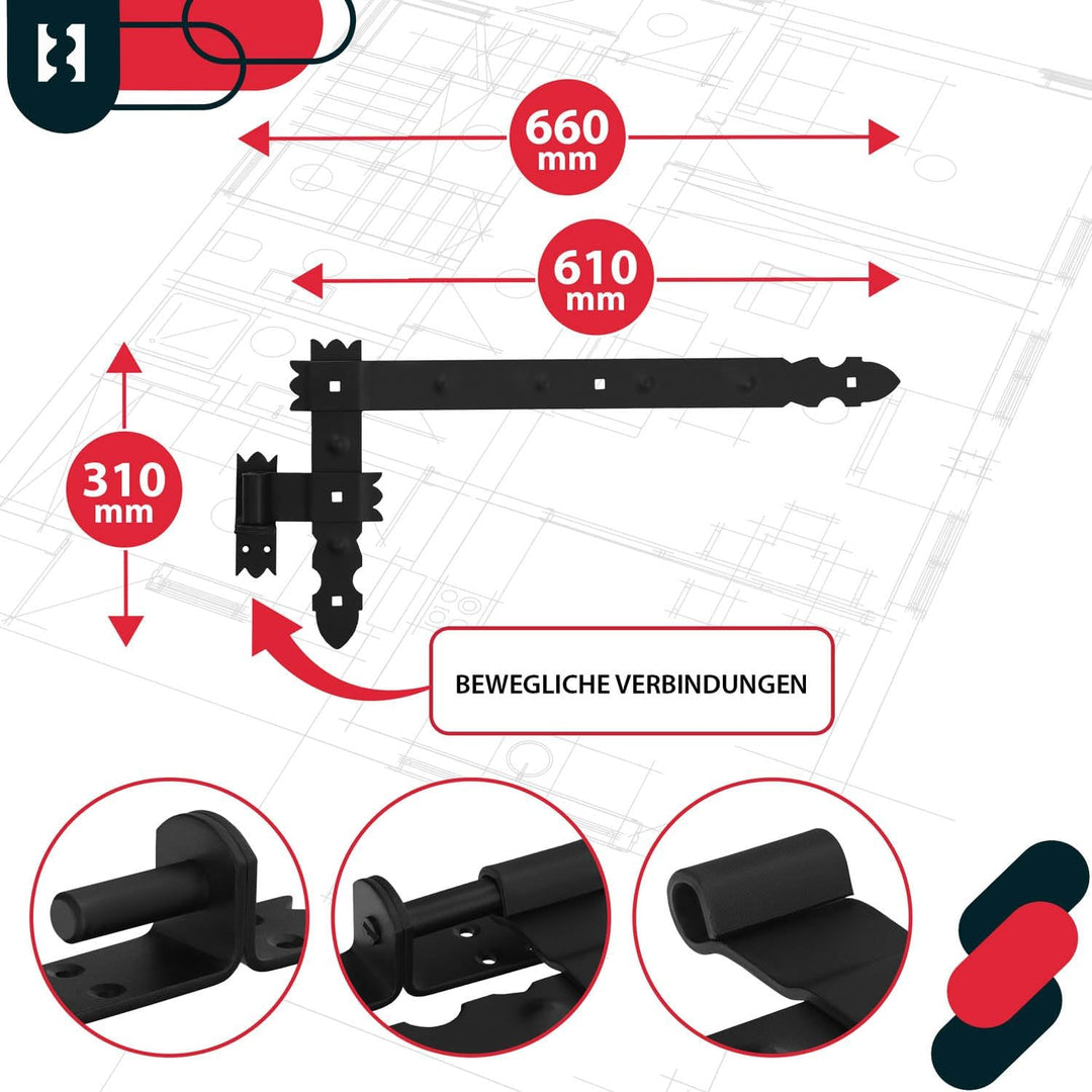 - UNIVERSALITÄT – Die Türbänder-Schmiedeeisen eignen sich zur Montage auf vielen Materialien: Holz, Metall, Ziegel. Das Produkt zeichnet sich durch einen bereiten Einsatzbereich aus. Die Winkelbänder werden vor allem zur Montage von Fensterläden