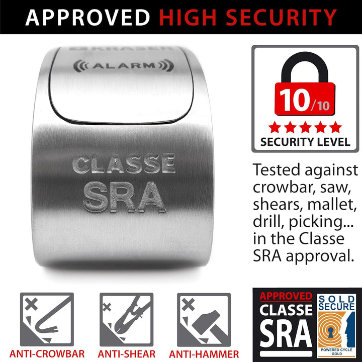 - KRASER: Bremsscheibenschloss Motorrad Marke KRASER von Equipmotor, einem etablierten Werk mit langjähriger Erfahrung in Wegfahrsperren und Garantie und Kundenservice aus Europa.