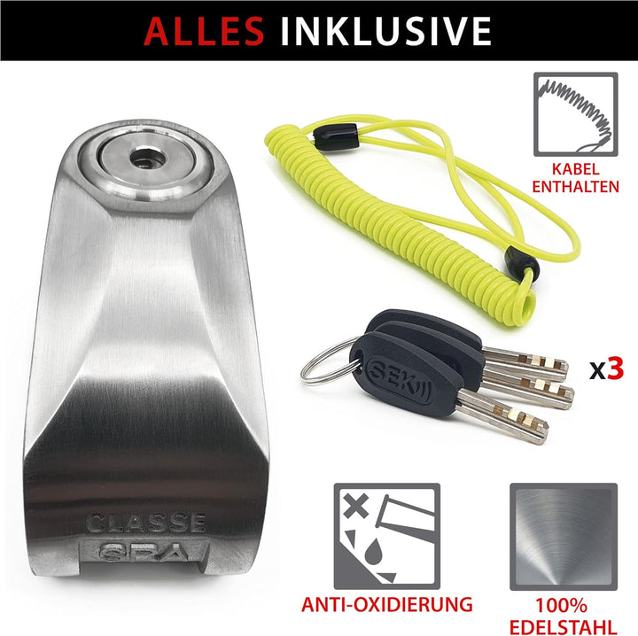 - BESTÄNDIG Diebstahlsicherung für Bremsscheibe aus Edelstahl mit einem schlanken Design und einer diebstahlsicheren Sicherheitstechnologie.