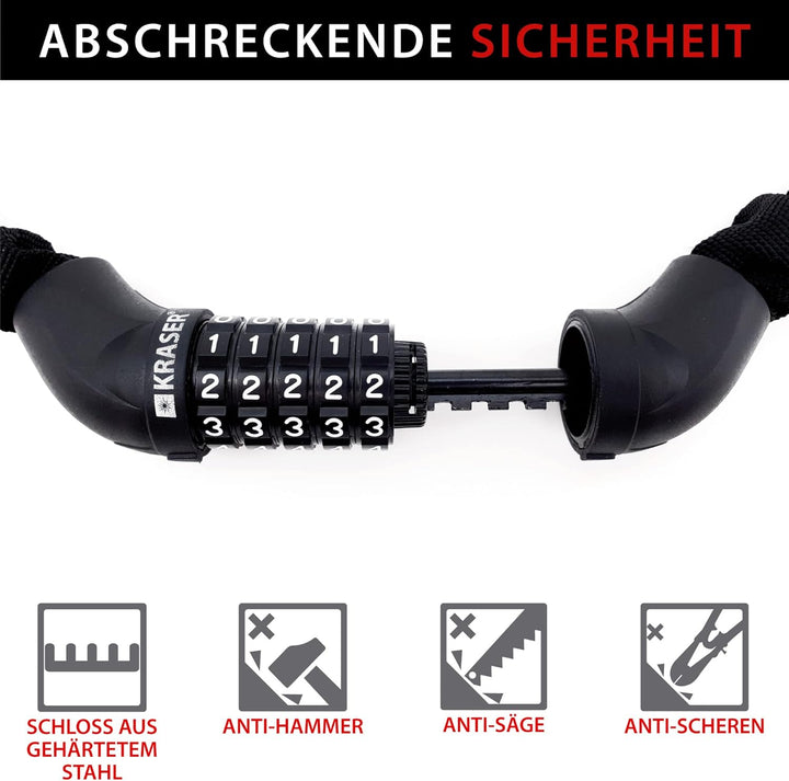 - 5-Stelliges kombinations - vorhängeschloss: Unser zahlenschloss fahrrad KR610 bietet eine 5-stellige Kombination mit 100.000 möglichen Codes für effektive Sicherheit.