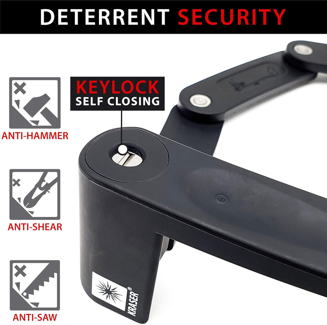 - 𝗦𝗜𝗖𝗛𝗘𝗥 𝗨𝗡𝗗 𝗥𝗢𝗕𝗨𝗦𝗧: Das Faltschloss KR7022B ist aus hochwertigem Stahl gefertigt, damit Sie Ihr Fahrrad sorgenfrei schützen können. Es hat 6 mm dicke Lenker, die mit Nieten verbunden sind, einen verstärkten